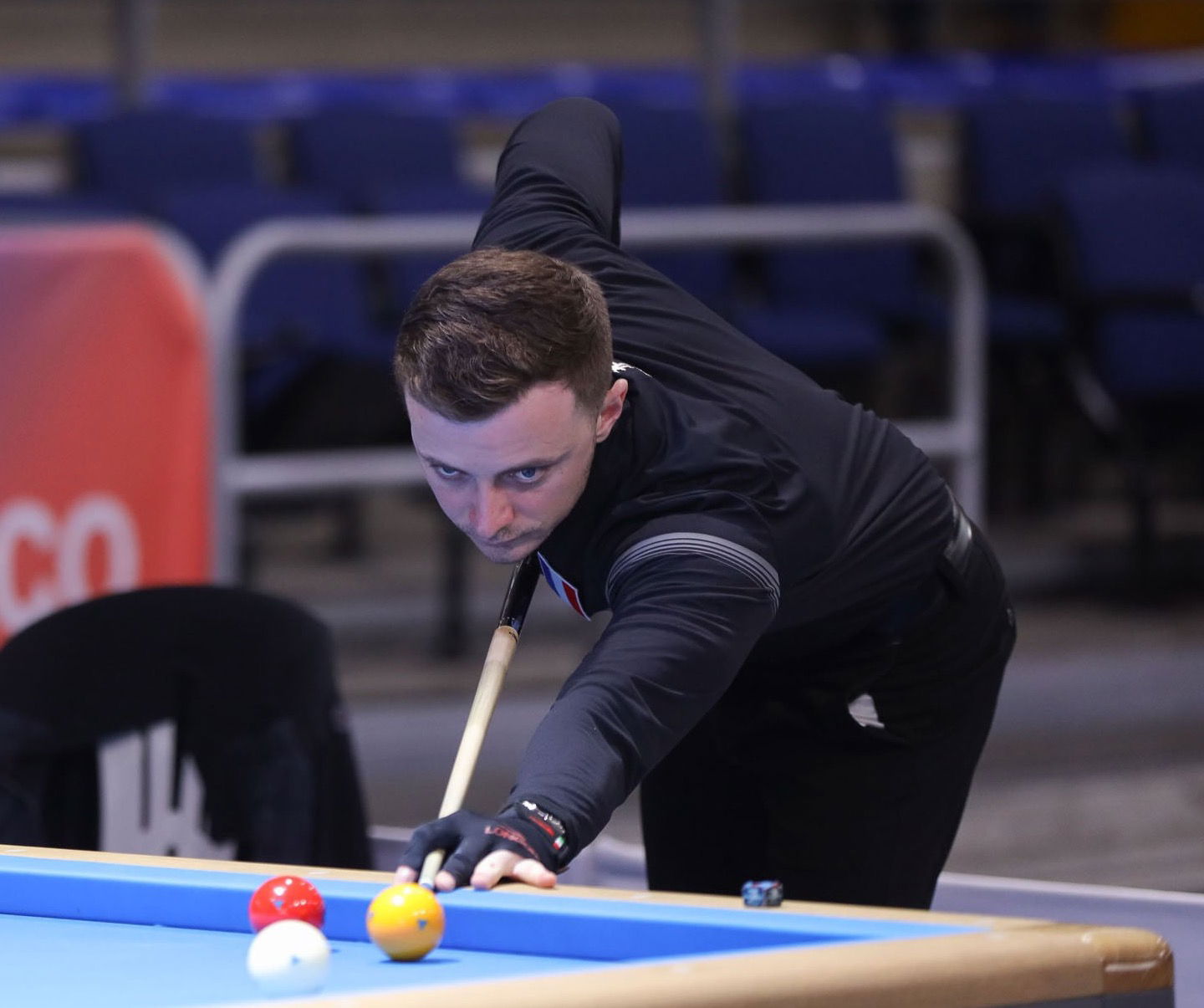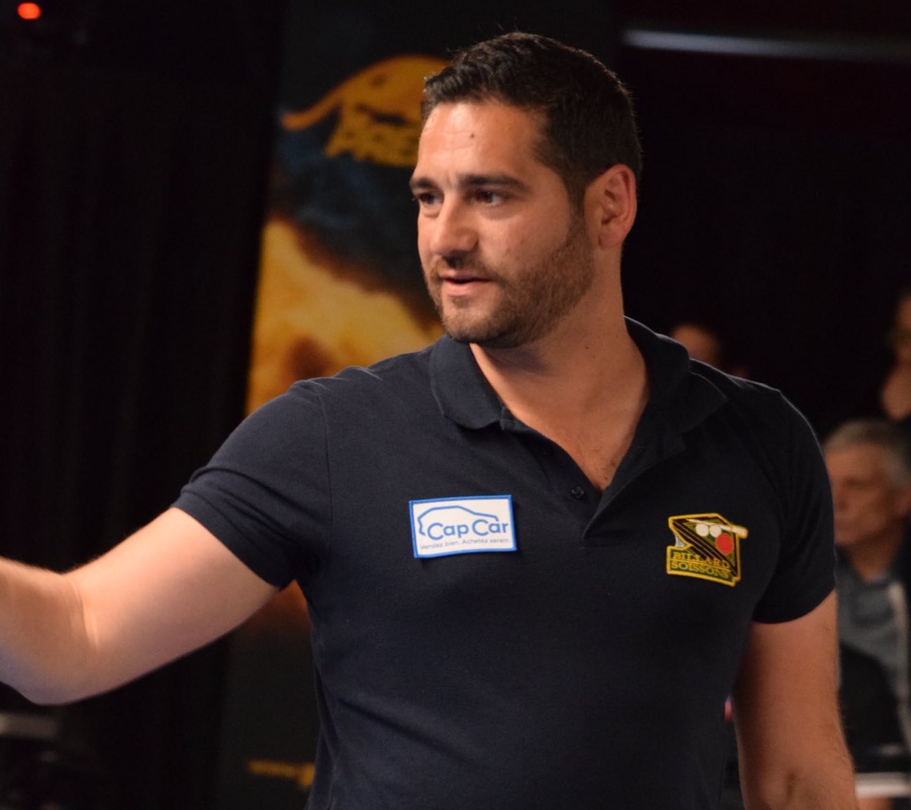 Quant à Kevin Vasseur (9ème qualifié à 1,296), il bat successivement Fatih Korkmaz (TR) 35-27 en 36 puis le redoutable Alexander Salazar sur la plus petite des marges 35-34 en 18 reprises (1,944/1,889) dans un match où le match nul était favorable au joueur sud-américain… Le Colombien menait 7-2 à la 7ème avant que le Français produise 34 points sur les 11 dernières reprises : 7-2-3-6-0-1-4-1-0-6-3 ! Salazar a eu une bille de qualification avant que le Soissonnais finisse sur 3, immense bravo Kevin !!