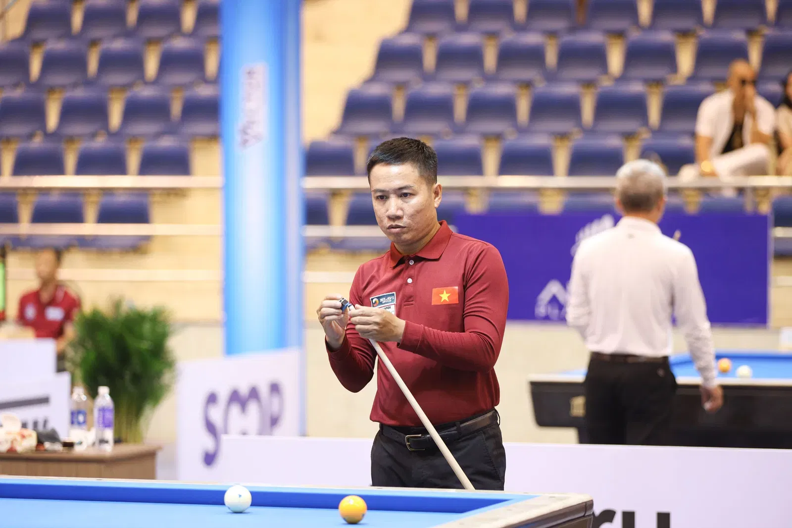 L’adversaire de Gwendal Maréchal, Nguyen Dinh Quoc, évolue depuis lundi à 1,500. Sur le match décisif, il menait face au Français 22-10 avant que Gwendal aligne 5-11-4-0-5 !! Il fallait ça (25 points sur les 5 dernières reprises) pour venir à bout du joueur local car Gwendal n’avait pas le droit au match nul. L’absence de Torbjörn Blomdahl en qualification demain permet néanmoins au talentueux Nguyen Dinh Quoc de se qualifier en tant que meilleur second de groupe avec 1,783 de moyenne aujourd’hui ! Au 1er match, Gwendal Maréchal s’était imposé face à Reggy Brouwers à 1,750 !