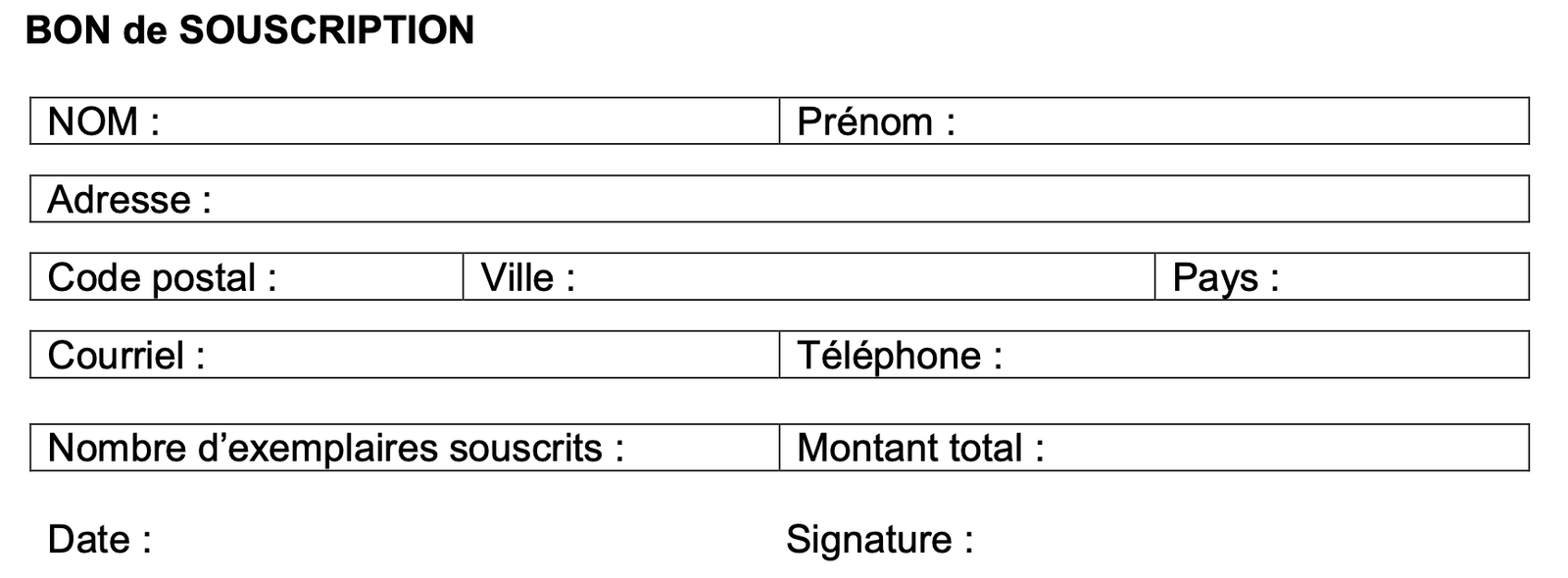 Pour passer commande, le bon de souscription à retourner, accompagné d’un chèque, se trouve ci-dessous :