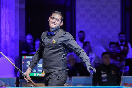 Hier, Kim Jun-Tae était repêché en tant que meilleur deuxième avec 3 points de match, aujourd’hui rebelote et le Coréen était meilleur deuxième avec 2 points cette fois et 1,733 de moyenne. Des 9 joueurs présents depuis le 1er jour (5 Espagnols et 4 Turcs), il n’en reste que deux : Muhammed Cavusoglu et Andres Carrion respectivement 8ème et 9ème du jour à 1,153 et 1,132. Le Turc en est à 4 victoires et 2 défaites depuis le début avec 0,892 et l’Espagnol à 6 victoires en 6 matchs et 1,071, Carrion ayant notamment battu aujourd’hui Murat Tüzül 30 à 21 en 20 reprises…