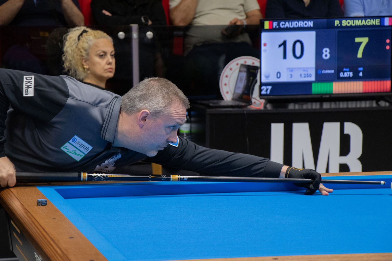 Dans le groupe Caudron - Soumagne - Seleventas, le Français s’incline contre le grec 36-40 en 23 reprises puis il bat le Belge 40-31 en 31 reprises. Pierre avait une petite chance de passer à condition que Frédéric Caudron batte Dimitrios Seleventas en plus de 19 reprises et que le joueur grec ne fasse pas plus de 20 points. La première condition est réalisée puisque Caudron fait 40 en 20 et reste derrière Pierre Soumagne en triangulaire, la deuxième condition non puisque le jeune Seleventas marque 27 points. 1er Dimitrios Seleventas avec 1,558, 2ème Pierre Soumagne 1,407, 3ème Frédéric Caudron à 1,392 ! Quelle belle perf’ pour Seleventas…