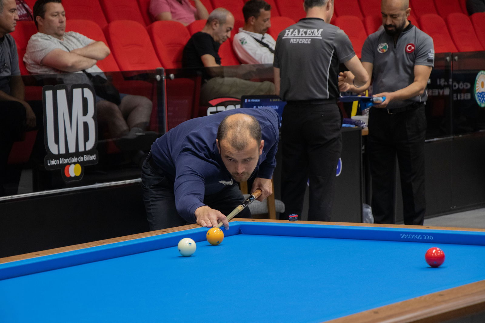 Et que dire de Ömer Karakurt ? Bille de 40ème point manqué contre Nguyen Tran Thanh Tu et défaite 39-40 en 26 reprises contre le joueur vietnamien, il affrontait Jean Paul de Bruijn au 3ème match pour la qualification. Le Turc bat le Néerlandais 40-18 en 14 reprises et se qualifie en triangulaire à 1,975 contre 1,487 pour JPdB et 1,294 pour Nguyen T.T.T !! JPdB est cependant qualifié comme troisième des meilleurs deuxièmes de groupe !!