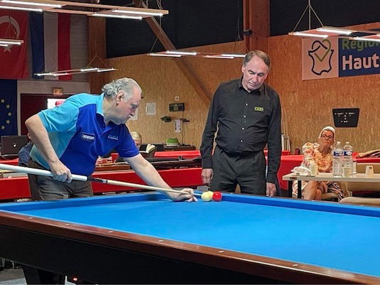 En demi-finale, Bernard Villiers est une nouvelle fois sur la route du Girondin. Le début de rencontre est timide pour les deux joueurs : 11-14 en 8/7 reprises jusqu’à la série de 56 de Bernard à la 8ème reprise (meilleure série du championnat) : 70-11 à la pause, le joueur de Ronchin ne reviendra pas et reste à 48 points à la fin de ce match disputé en 16 reprises.