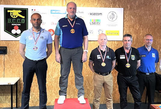 Jacky Justice (MG 7,09), 1er des qualifiés en quart de finale à 10,00 sur ses deux matchs de double KO, et Bernard Villiers (MG 6,28) complètent le podium.