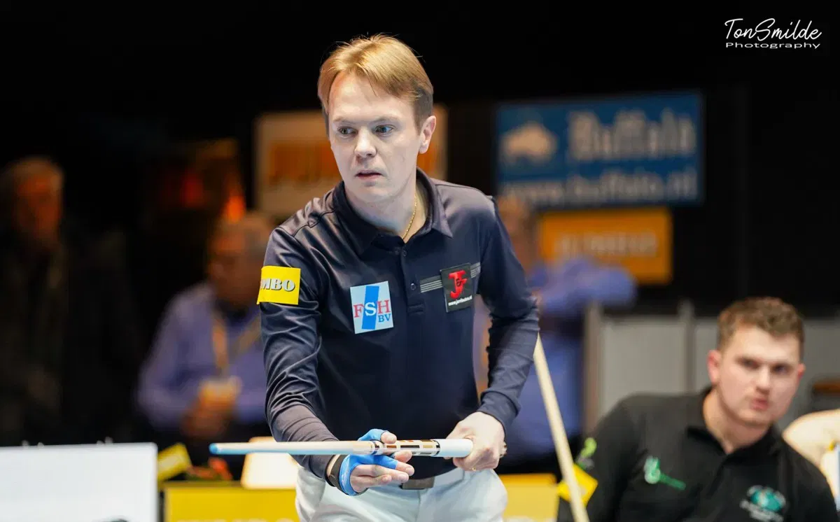 Martien van der Spoel s'est également illustré hier en battant Richard Dekker : 40-12 en 15 reprises avec un série maximale de 9. SIS a remporté tous ses matchs contre Harwig, qui semble scotchée à la dernière place. Burgmans Biljarts a réussi à obtenir un point contre Van Baal où Sam van Etten s'est imposé face à Bart Ceulemans (40-17 en 18 reprises). Roland Forthomme a été l'autre vainqueur pour Van Baal contre Tom Löwe.