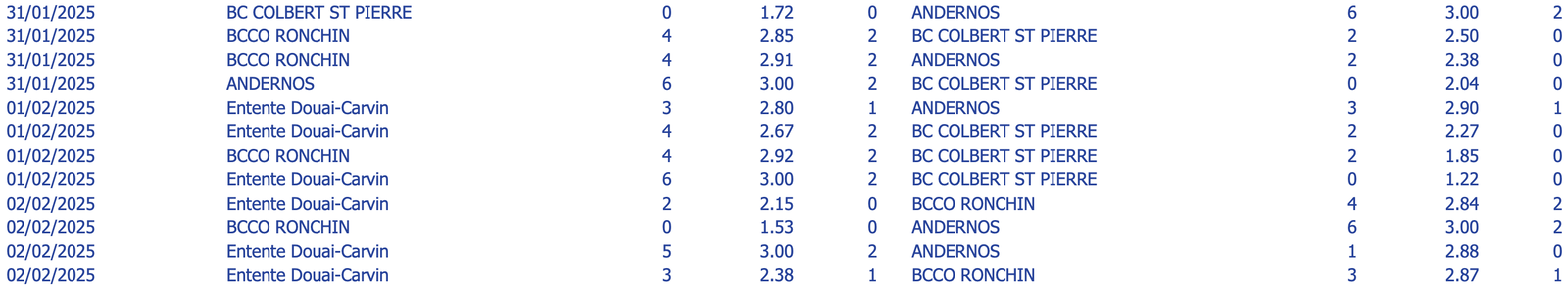 Le groupe B jouait sa saison régulière en intégralité (4 journées) à Carvin avec la présence de Douai-Carvin, Ronchin, Andernos et St Pierre des Corps. Chaque équipe a disputé 6 rencontres dans cette poule unique en rencontres aller-retour et la bataille pour la qualification en Final Four a tourné à l’avantage des deux équipes nordistes sur la 12ème et dernière rencontre les opposant l’une à l’autre et même sur le 36ème et dernier match du week-end ! Drôle de programme que celui-ci en terme d’équité sportive sans qu’il y ait rien à redire sur le déroulé de cet ultime match opposant Alain Remond à Bernard Villiers.