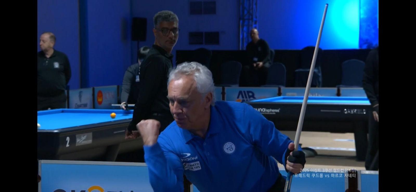 Les deux derniers matchs clôturant la journée pour le compte des quarts de finale opposaient Dick Jaspers à Kim Haeng-jik et Berkay Karakurt à Marco Zanetti. Le Néerlandais et l’Italien étaient encore en course pour coiffer Myung-woo Cho sur l’année 2025 en début de partie à condition de gagner le tournoi.