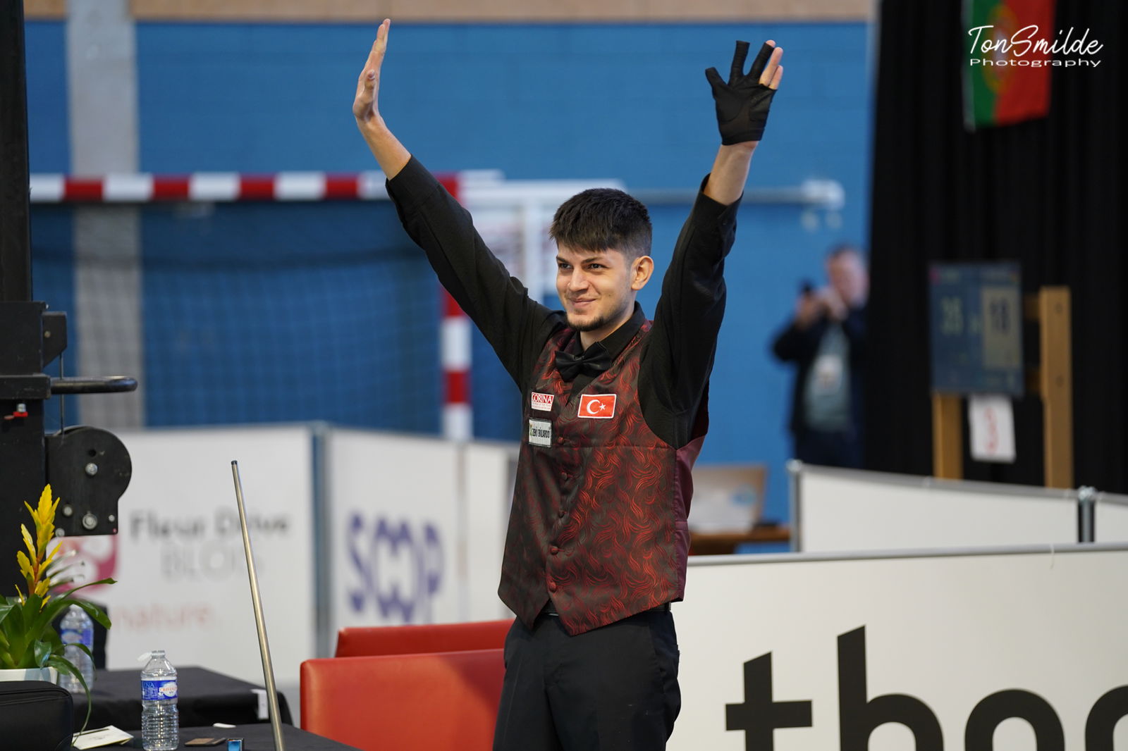 Le Champion d’Europe 3B Junior 2024, Seymen Özbas (Turquie), 19 ans, est désormais également Champion du monde 2024 après une finale remportée contre Jo Yeong Yun sur le score de 35-28 en 27 reprises ce dimanche 15 septembre à Blois (France). Le joueur turc affiche la meilleure moyenne générale de l’ensemble des participants avec 1,508.