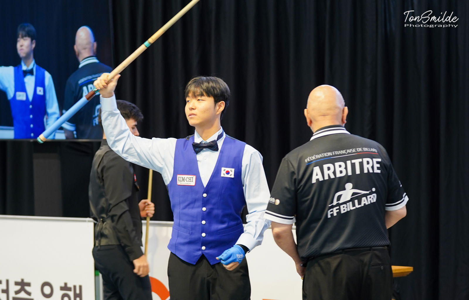 Le Champion du monde obtient la meilleure moyenne générale avec 1,508 loin devant le Coréen Cho Hwa Woo, 5ème à 1,372, de Amir Ibraimov, 16 ans, et 3ème à 1,277, de Tangui Duriez à 1,232 et classé 9ème. La meilleure moyenne particulière est pour le Champion du monde 2023, Oh Myeong Gyu avec 2,500 (25 points), la meilleure série pour Denizcan Akkoca avec 13.