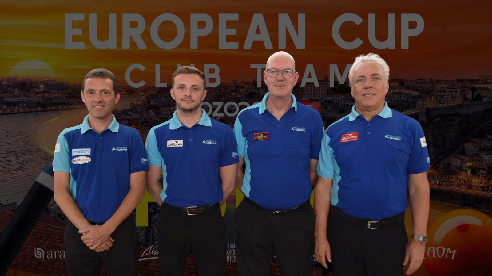 Dans le groupe A, Andernos (MG 1,293) remporte la rencontre décisive contre Mostoles 8-0 et se qualifie en étant invaincue avec 21 points de matchs individuels sur 24. Andernos ne pouvait se permettre le match nul face à l’équipe espagnole. Son leader Marco Zanetti remporte ses trois matchs à 1,600, son n°2 Roland Forthomme idem à 1,277, son n°3 Gwendal Maréchal prend 3 points sur 6 à 1,258 et son n°4 Jérôme Barbeillon gagne ses trois matchs à 1,121. La moyenne de Mostoles (MG 0,940) ne lui permet pas de figurer comme meilleur deuxième de groupe pour la qualification.