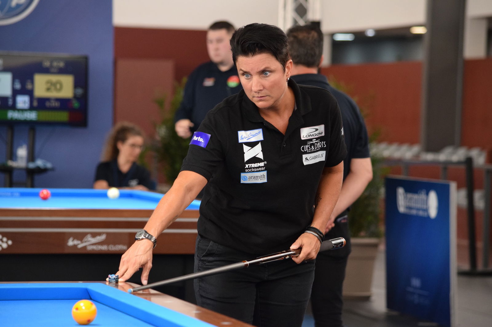 Dans le groupe B, les Néerlandais de Cues&Darts remporte la rencontre décisive face à l’équipe autrichienne du BSK Pottendorfer 5-3 grâce aux succès de Therese Klompenhouwer contre Herbert Szivacz 40-34 en 28 reprises, de Joey de Kok contre Dominik Nebuda 40-27 en 48 et au match nul de Martin Horn contre Huub Wilkowski en 23 reprises. Jef Philipoom s’incline contre Sameh Sidhom 28-40 en 25. Cette victoire impérative de Cues les qualifie et élimine Pottendorfer qui n’est que le deuxième des deuxièmes de groupe avec 1,187.