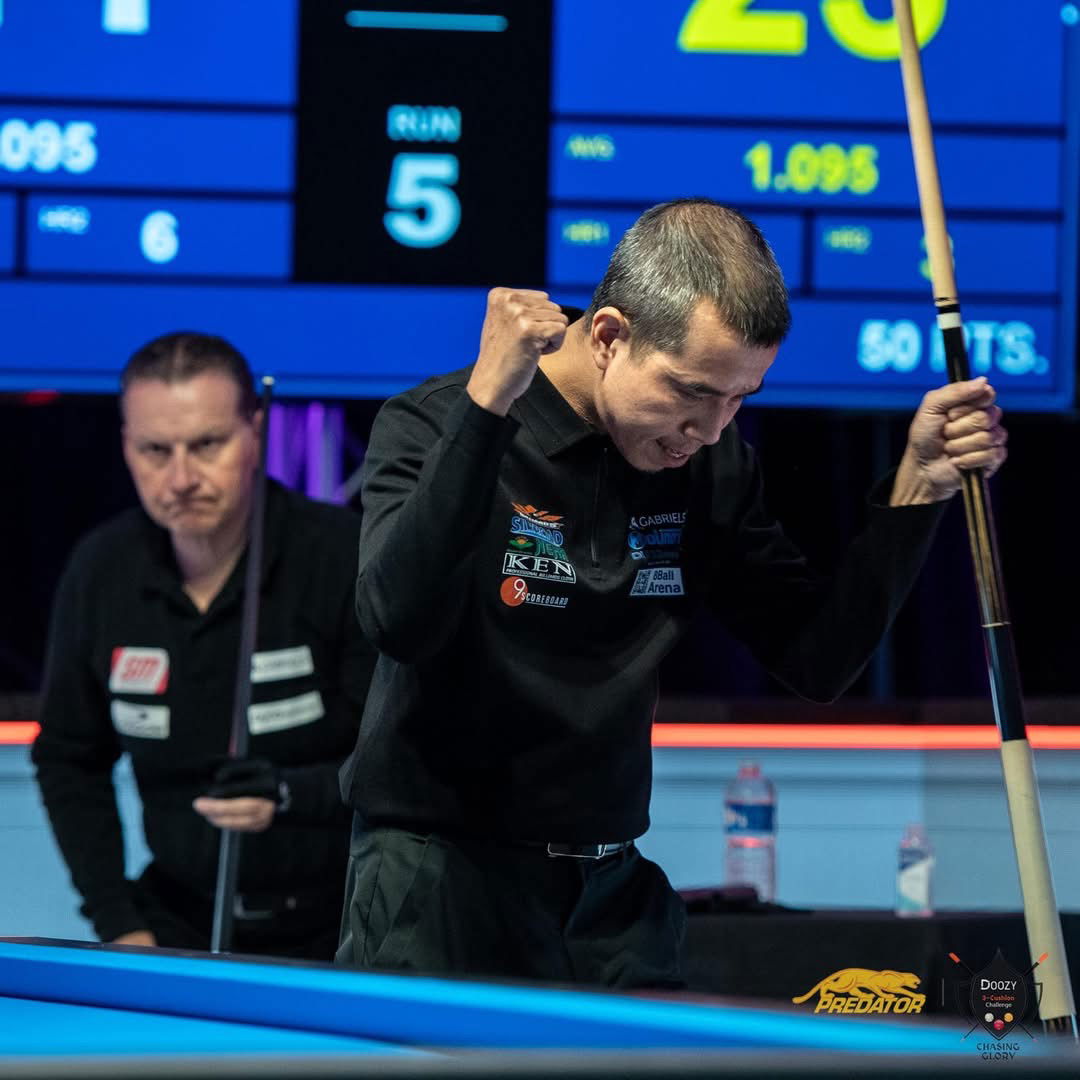 Après une longue période de quatre World Cups infructueuses, Tran Quyet Chien revient au plus haut niveau et remporte le Doozy 3C Challenge de Blois ce dimanche 21 décembre 2025 ! Et quelle montée en puissance pour le joueur vietnamien puisqu’il bat coup sur coup et plutôt sèchement en dernière journée les deux stars belges Eddy Merckx en demi-finale 50-23 et Frédéric Caudron en finale 50-15.