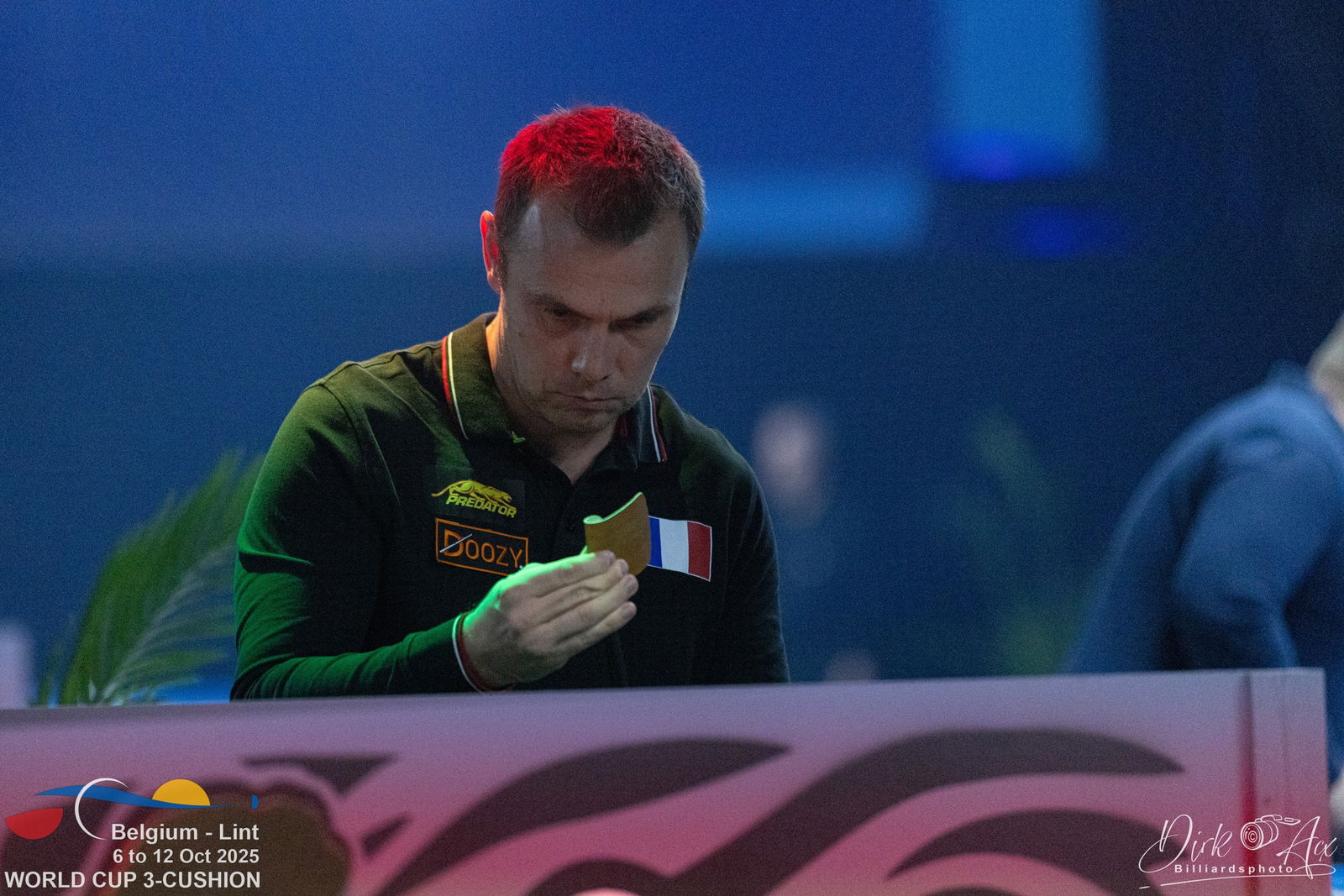 Le premier des trois tricolores a se qualifier est Gwendal Maréchal (MG 1,521). En 21 reprises, il atteint la distance finale et se qualifie sans se préoccuper de la reprise de Tarik Yavuz : score final 35-19 en 21 reprises. Le Français réalise la meilleure série de la journée avec 14 !!