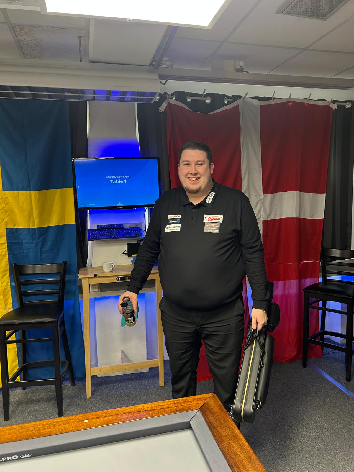 BORGEN – De jonge Deense biljarter Björn Mikkel Jensen (25) is een nieuwe ster aan het firmament van het Deense driebanden. De nog onbekende biljarter heeft zondag volkomen onverwacht de titel van Nordic kampioen veroverd. Het kampioenschap met bekende spelers als Torbjörn Blomdahl, David Pennör, Thomas Andersen en Nalle Olsson, werd gespeeld in de Deense stad Borgen. Björn Mikkel Jensen won in de halve finale met shoot-outs van Torbjörn Blomdahl en in de finale ook met shoot-outs tegen David Pennör. Het was voor Björn Mikkel Jensen, een onbekende in het driebanden, de eerste keer dat hij aan het Nordic kampioenschap meedeed nadat hij in andere disciplines, zoals 5 pins, Deens kegelbiljart en biatlon vele keren het Deens kampioenschap bij de junioren heeft gewonnen. Björn Mikkel Jensen, uit de stad Naestved, gehuwd met Jeannette Mortensen en jonge vader van twee kinderen (Josefine van 18 maanden, Mateo van 2 maanden) heeft een tweelingbroer die ook biljart speelt, maar is gestopt met driebanden.