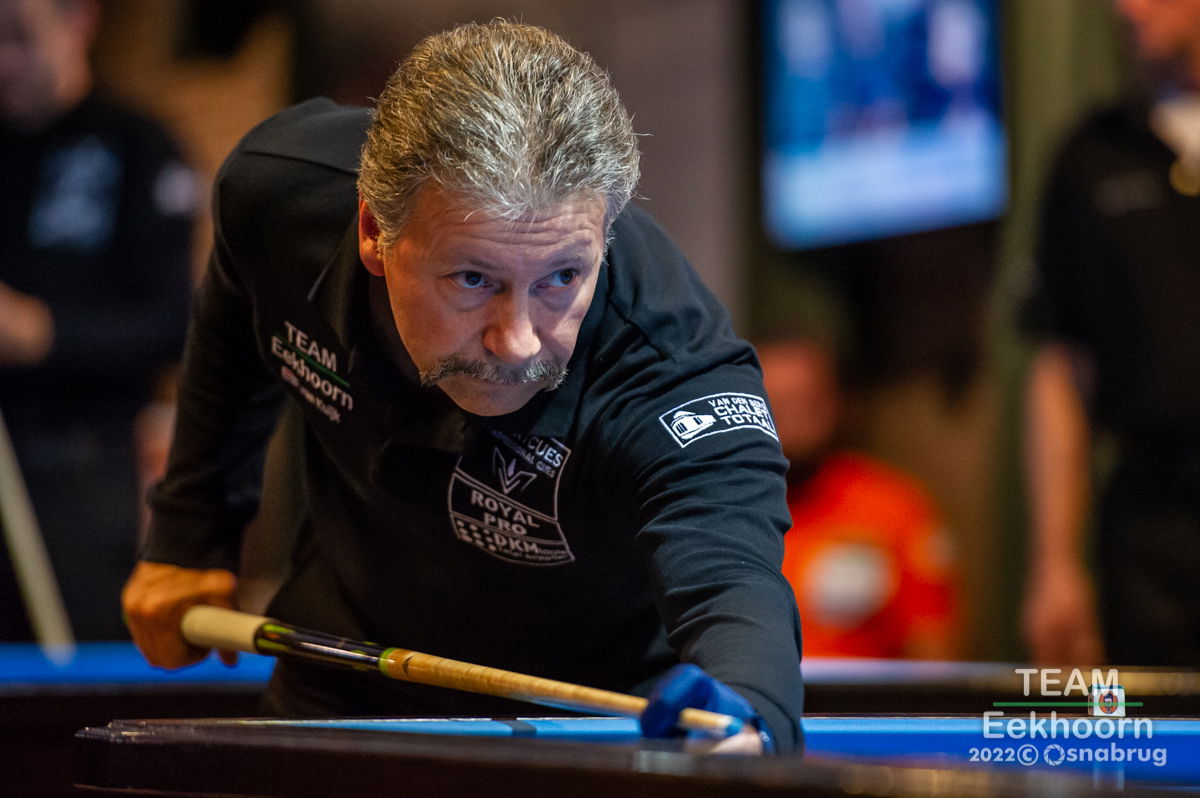 PORTO – De voorronden in de Europacup voor clubteams gaan in Porto vandaag, vrijdag, naar de beslissingen. In de vijf poules plaatsen de groepswinnaars en één beste nummer twee zich voor de finale met 8 teams. FC Porto, de organisator, en Varde BK, de titelhouder, komen vanaf zaterdag in het toernooi, waarin op de laatste twee dagen knock-out wordt gespeeld. Op de vroege Portugese morgen (11.00 in West Europa) speelt vandaag onder andere Soissons tegen Neusiedl met Caudron-Hofman op centercourt. De Nederlander Frans van Kuyk, die speelt voor Team Eekhoorn, was een van de beste winnaars op de tweede dag van de kwalificaties. Hij versloeg zijn tegenstander met 40 in 17 beurten, gemiddeld 2.352. Ruben Legazpi van Mostoles won een partij in 20 beurten, Sam van Etten van Weywiesen in 23 beurten, Martin Horn van Pottendorfer en Glenn Hofman van Neusiedl in 22 beurten, Marco Zanetti van Andernos in 23 beurten.