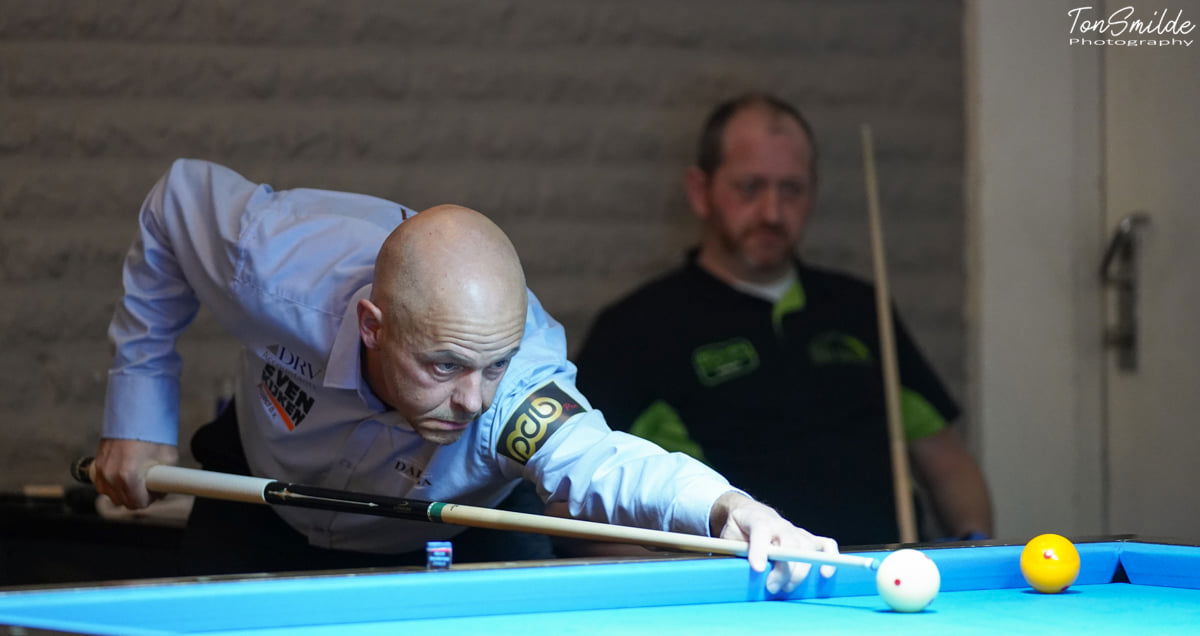 Burgmans Biljarts hield ST Zundert op een verdiende 4-4 na de winst van Sam van Etten en Rik van Beers (40 in 25) voor de pauze, maar de gelijkmakers van Davy van Havere en Anno de Kleine na de stop. Team Eekhoorn speelde thuis gelijk tegen A1 Biljarts/DPC met een voortreffelijke Ronny Lindemann, die Peter Ceulemans na een korte nacht (terug met een nachtvlucht van de Kozoom Cup) op zijn zwakste plek kon treffen: 40-14 in 22. Frans van Kuyk en Jerry Hermans wonnen voor Eekhoorn, Richart Bitalis versloeg Kurt Ceulemans.
