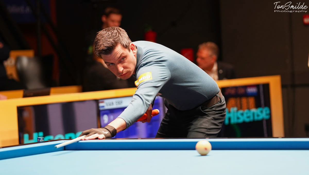 Jeffrey Jorissen speelde met J&F Auto's gelijk tegen Cues&Darts door een overwinning op Robinson Morales