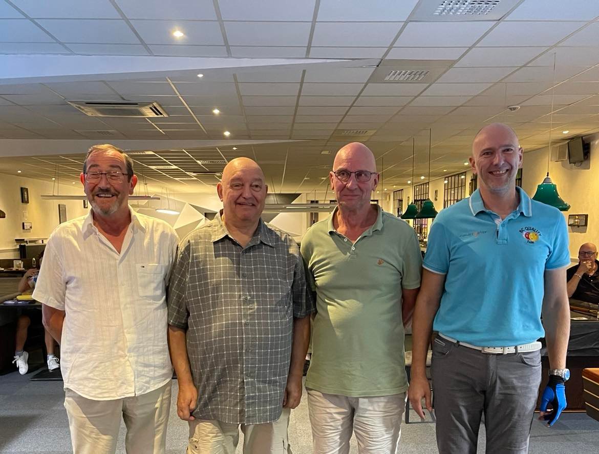 De top vier op de kleine tafel in de Vinatera Open: Paul Lenaerts, Eddy Willems, Jan Plasmans (winnaar) en Koen Boone
