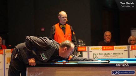 De Eureka tafels in de speelarena van Den Durpsherd zijn volgens de speaker Ferry van der Veen 'de Ferrari's onder de biljarts', maar uit de moyennes na twee dagen is dat nog niet gebleken. Dick Jaspers (2.105), Jean van Erp (1.316) en Barry van Beers (1.295) vormen de top drie na twee dagen. Vooral Dave Christiani (1.095), Raimond Burgman (0.954) en Glenn Hofman (1.222) en min of meer ook Jean Paul de Bruijn (1.288) staan te ver verwijderd van het moyenne waarmee ze meestal tot de uitblinkers in de Masters behoren.