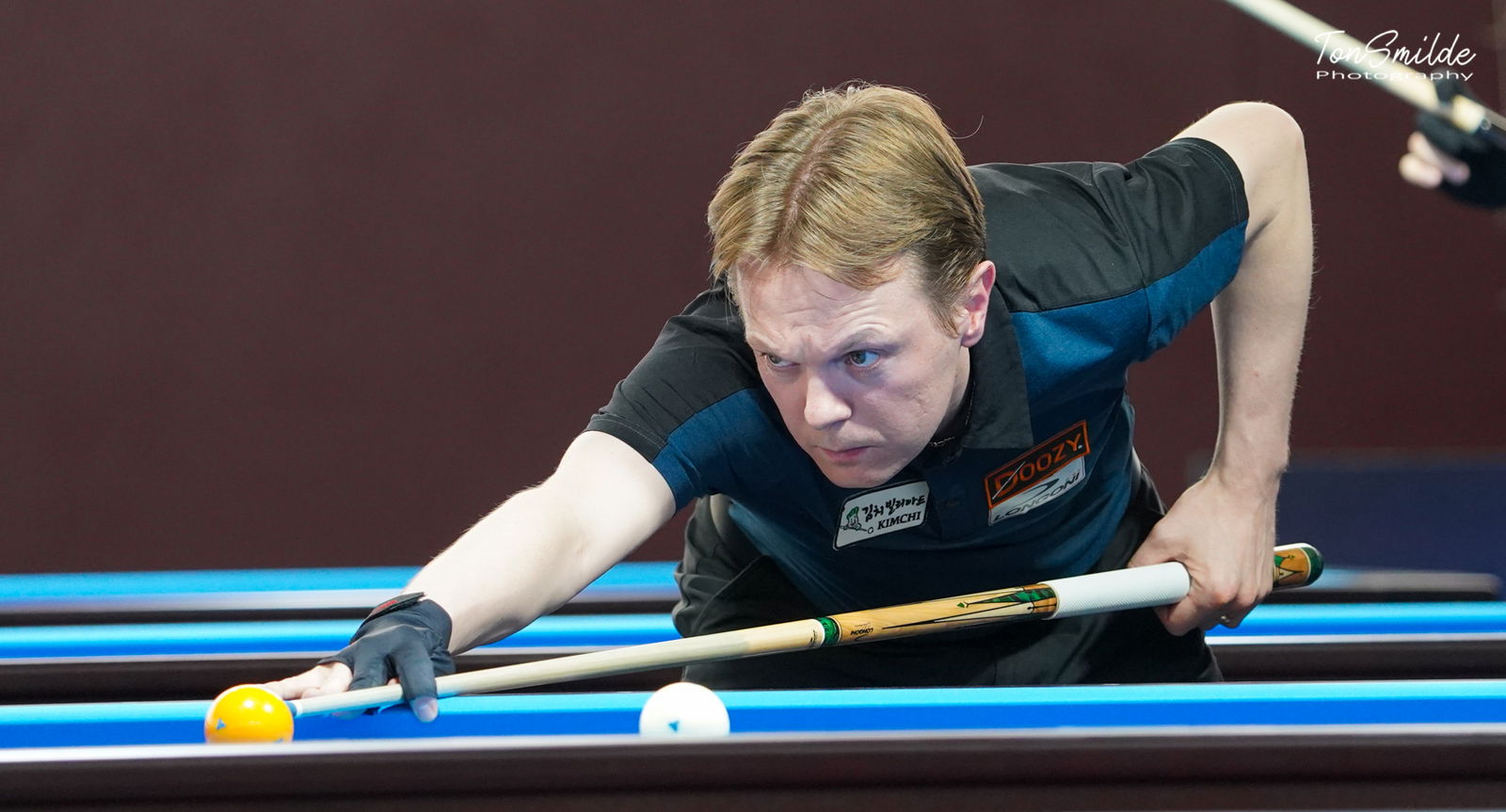De rol van TTT Nguyen, één van de gevreesde Vietnamezen, is snel uitgespeeld door verliespartijen tegen Alexander Salazar (40-25 in 27) en Omer Karakurt (40-38 in 29). Voor de toppositie ontwikkelt zich een heerlijk gevecht tussen Karakurt en Salazar, dat eindigt in een thriller. De Turk speelt uit in de 34e beurt, Salazar moet 4 keer scoren voor de gelijkmaker, maar mist de laatste in de carré. Dat brengt de winst naar Omer Karakurt.