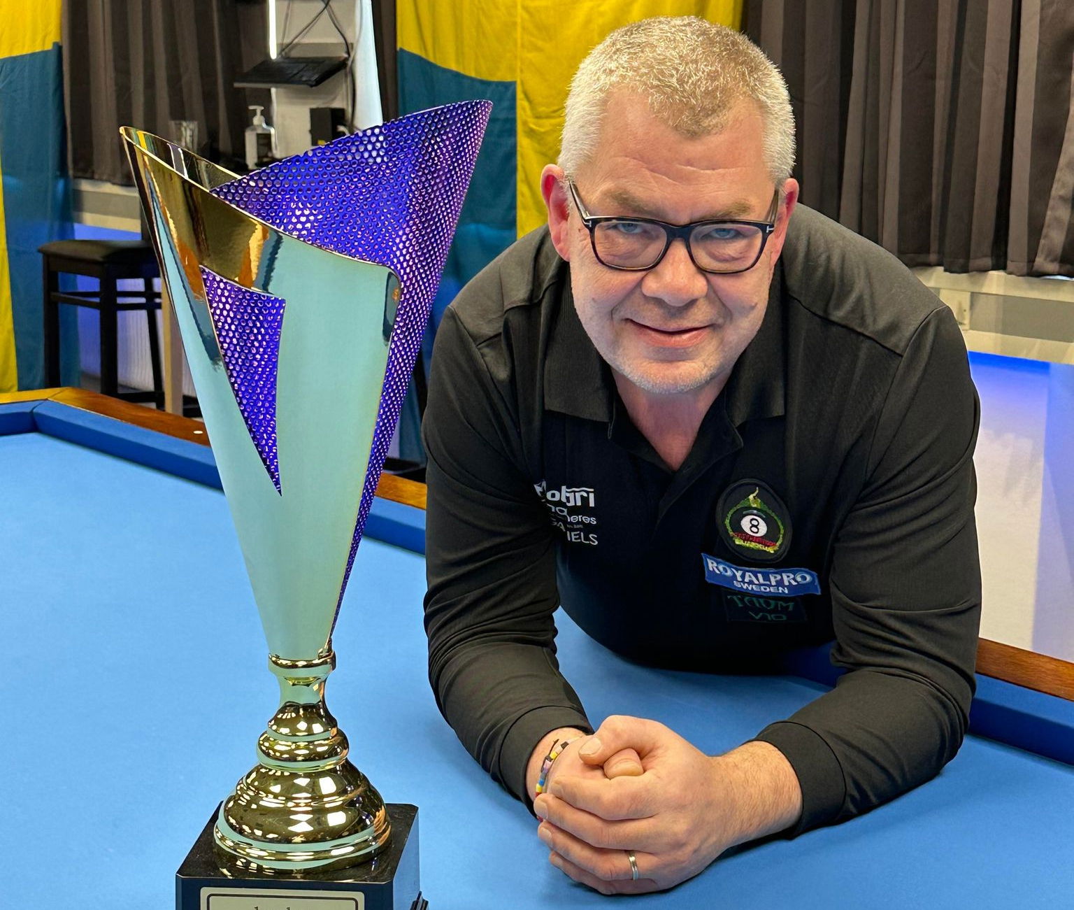 BORGEN – De 51-jarige Michael Nilsson heeft zijn vijfde Zweedse titel veroverd in een toernooi waarin Torbjörn Blomdahl de nummer twee was. Het Zweeds kampioenschap werd gespeeld in Biljardklubben Borgen met 12 spelers, die elkaar allemaal troffen in een Round Robin format. Michael Nilsson haalde de maximale score tegen zijn eerste tien tegenstanders. Hij was al kampioen voor zijn partij tegen Blomdahl, die hij verloor met 40-16 in 17 beurten. De heersende kampioen (Blomdahl) verspeelde matchpunten tegen Alf Karlsson (40-40) en David Pennör (40-32) voordat hij tegenover de ongeslagen Nilsson stond. ,,Het was een speciaal gevoel’’, zei Nilsson later, ,,kampioen worden zonder van Torbjörn te winnen.’’