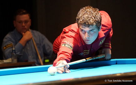 NAREJOS - De 19-jarige Koreaan Myung Woo Cho doet deze week in Spanje een gooi naar zijn tweede opeenvolgende wereldtitel driebanden bij de junioren. Dani Sánchez, de nummer één van de wereld, regerend en viervoudig wereldkampioen, ziet Myung-Woo als het grootste natuurtalent dat hij ooit op het biljart heeft gezien. ,,Hij heeft een fantastische speelstijl en een prachtige techniek, concentratie en mentaliteit'', verzekert de Spanjaard, die zelf als junior nooit een wereldkampioenschap heeft gespeeld. ,,Ik hoop in mijn hart op een Spaanse winnaar, maar mijn gevoel is dubbel, ik zal ook blij zijn als Myung-Woo Cho wint. Hij traint bijna elke dag in mijn club en is meer dan een vriend geworden.''