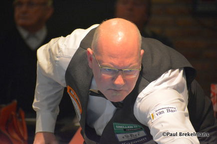 Roland Forthomme, winnaar tegen Jean Paul de Bruijn, blijft met zijn team van Herstalien aan kop van de ranglijst in België, gedeeld met Biljart Express