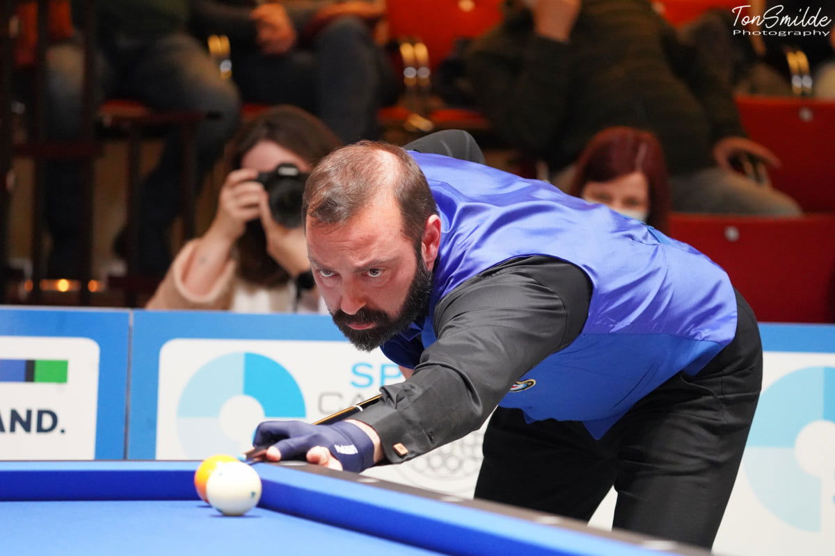 Nikos Polychronopoulos, beste winnaar van de 5e speelronde in Nederland met 40 in 15 tegen Peter Ceulemans