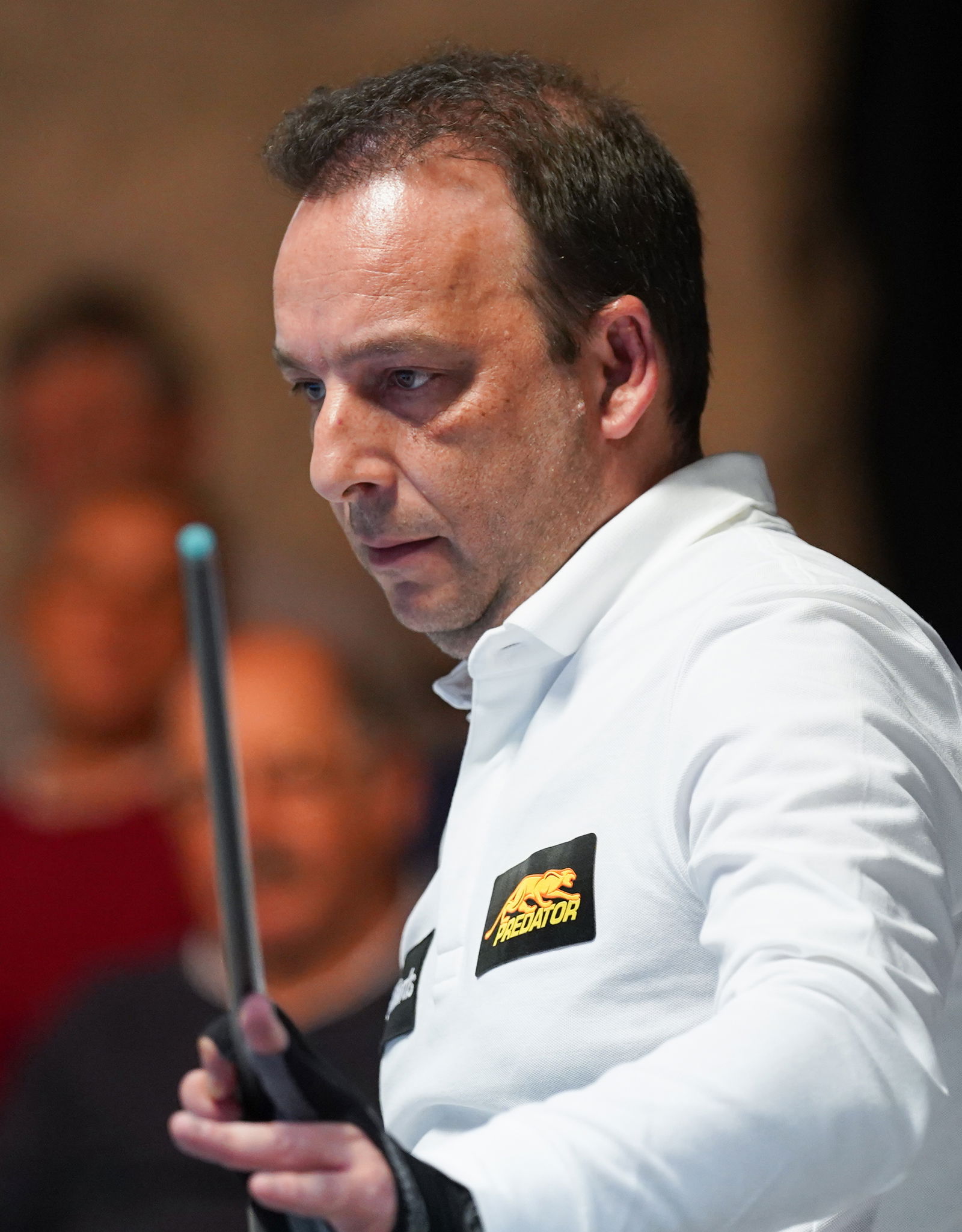 Semih Sayginer heeft een prima start in de West Europese ontmoeting met Nikos Polychronopoulos. De Turks/Griekse clash staat na tien beurten op 21-9 voor Sayginer, die profiteert van de zwakke fase van zijn tegenstander. De Griek kan ook weer niet sterk eindigen met veel gemiste kansen in de laatste tien beurten. Sayginer gaat uit met 3 en 4: 50-31 in 33.