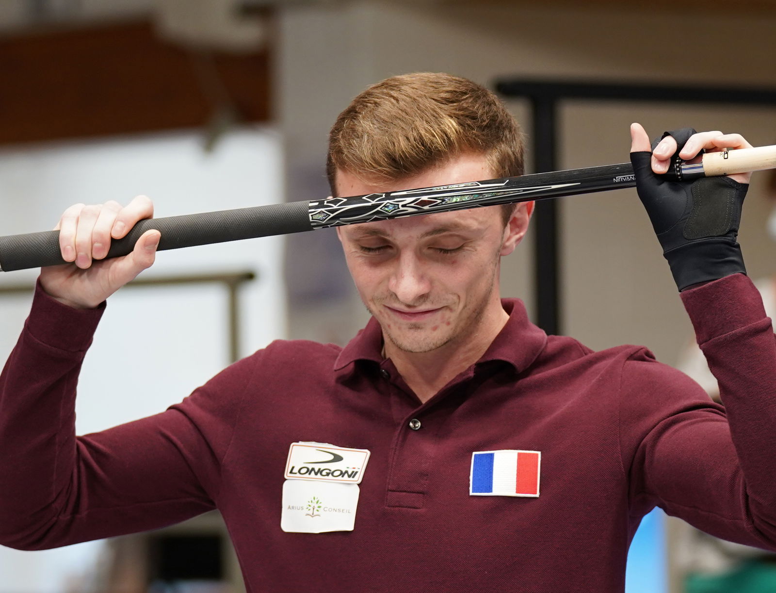 Gwendal Maréchal schakelt zaterdagmorgen (diep in de West Europese nacht) een van de grote favorieten, Marco Zanetti, uit met 50-44 in 28. De Fransman blijft heel de partij dicht in de buurt van zijn befaamde rivaal, die leidt met 14-13 in tien beurten, met 31-28 in 18, maar de marge verspeelt door serietjes van 3, 4 en 5 van Maréchal, die voorsprong neemt met 44-37, 46-39 en het daarna afmaakt met 3 en 1.