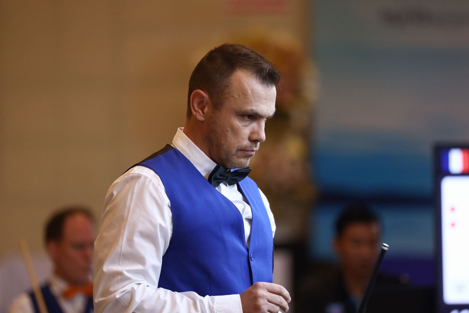 De nummer 1 van de wereld, Dick Jaspers, stond in één van de zwaarste poules tegenover Hong Chiem Thai, een snel opgeroepen invaller, die het WK was gestart met winst tegen Turgay Orak met 40-27 in 16 en daarna Dick Jaspers op zijn weg trof. De Nederlander ontsnapte in de eindsprint: Thai leidde met 35-23, moest nog vijf caramboles maken, maar Jaspers rondde het slotoffensief af met 4-6-0-0-7 voor een eindstand van 40-37 in 21.
