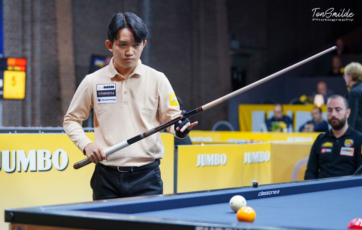 De Koreaanse ex-winnaar in Veghel stoomt op naar de kwartfinales met een zorgeloos partijtje tegen Sam van Etten. De overwinning komt geen moment in gevaar. Sam van Etten heeft een magistrale dag op donderdag achter de rug, maar verbleekt vanaf de eerste beurten tegen Haeng Jik Kim. Het wordt een onverwachte afstraffing voor de jongeling die Marco Zanetti zo heeft laten lijden, maar die nu op een sterke Haeng Jik Kim stuit. Sam van Etten, die een van de wildcards kreeg, mag niettemin een genereus applaus van het Nederlandse publiek in ontvangst nemen. Het werd 50-20 in 23.