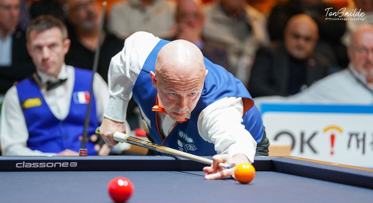 VIERSEN – De twee grootste publiektrekkers op het Wereldkampioenschap driebanden voor landenteams liggen uit het toernooi. Het Duitse thuisland is uitgeschakeld en ook Nederland moest vrijdagavond in de voorlaatste voorronden het WK verlaten. Vier landen hebben zich al geplaatst voor de knock-outs met de beste 8 teams, twee ronden worden zaterdag rond de middag nog afgewerkt. De geplaatste landen voor de knock-outs met acht teams in Viersen zijn tot nu toe Zweden, België, Japan en Frankrijk. Andere kanshebbers die zich daar nog bij kunnen voegen zijn Vietnam, Turkije of Spanje in de ene poule en Zuid-Korea, Colombia, Griekenland of USA in de laatste poule.