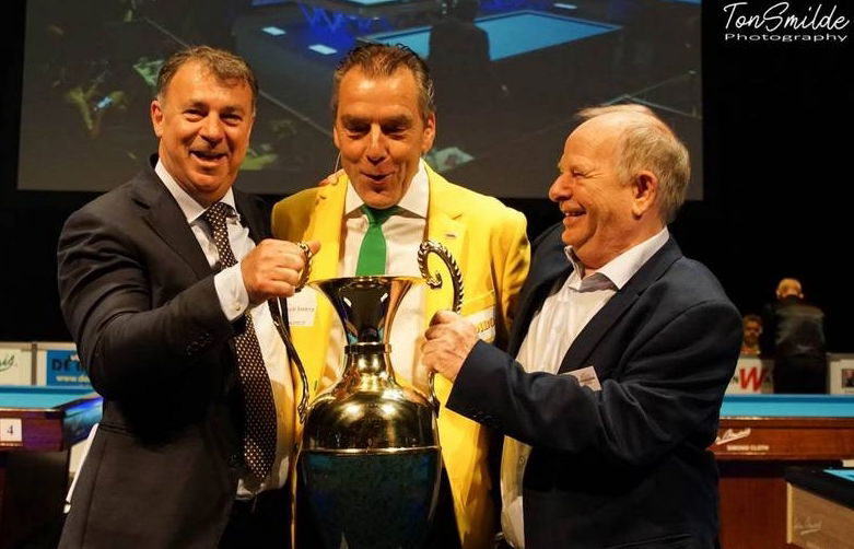 Harry Mathijssen: Ik verwacht er heel veel van, want met de volledige wereldtop in huis, met plaatselijke topspelers als Dick Jaspers en Jean van Erp, Torbjörn Blomdahl, Semih Sayginer, Eddy Merckx, Marco Zanetti en al die andere grote spelers kan het niet anders dan het wordt een fantastisch toernooi. Ik wil ook even wijzen op onze hoofdsponsor, Jumbo, die dit voor ons mogelijk heeft gemaakt. De directeur van Jumbo woont hier in de streek. Jumbo werd voor het eerst sponsor in de sport bij de Masters in Veghel dankzij Karel van Eerd. Daarna is Jumbo met veel succes in de wielersport gegaan met de Jumbo ploeg, maar ze zijn ook ook sponsor van Max Verstappen en van Racing team Nederland. Frits van Eerd is nu directeur en heeft zich voor drie jaar verbonden als hoofdsponsor aan de World Cups. De voorverkoop loopt heel goed. We hebben een grote arena voor het hoofdtoernooi met in totaal 400 plaatsen en een VIP tribune. In de kleinere arena, voor de voorronden, zijn 170 zitplaatsen. De locatie, CHV Noordkade in Veghel, wordt omgetoverd tot een biljartpaleis. Het is een unieke zaal, een cultuurfabriek met veel horeca en andere activiteiten. Ik nodig iedereen die van biljarten houdt uit om onze World Cup te bezoeken. En voor wie niet live kan komen kijken, is er heel de week Kozoom, dat alle partijen live uitzendt en vanaf het hoofdtoernooi, voor het eerst in de historie, de uitzendingen op Ziggo Sport.