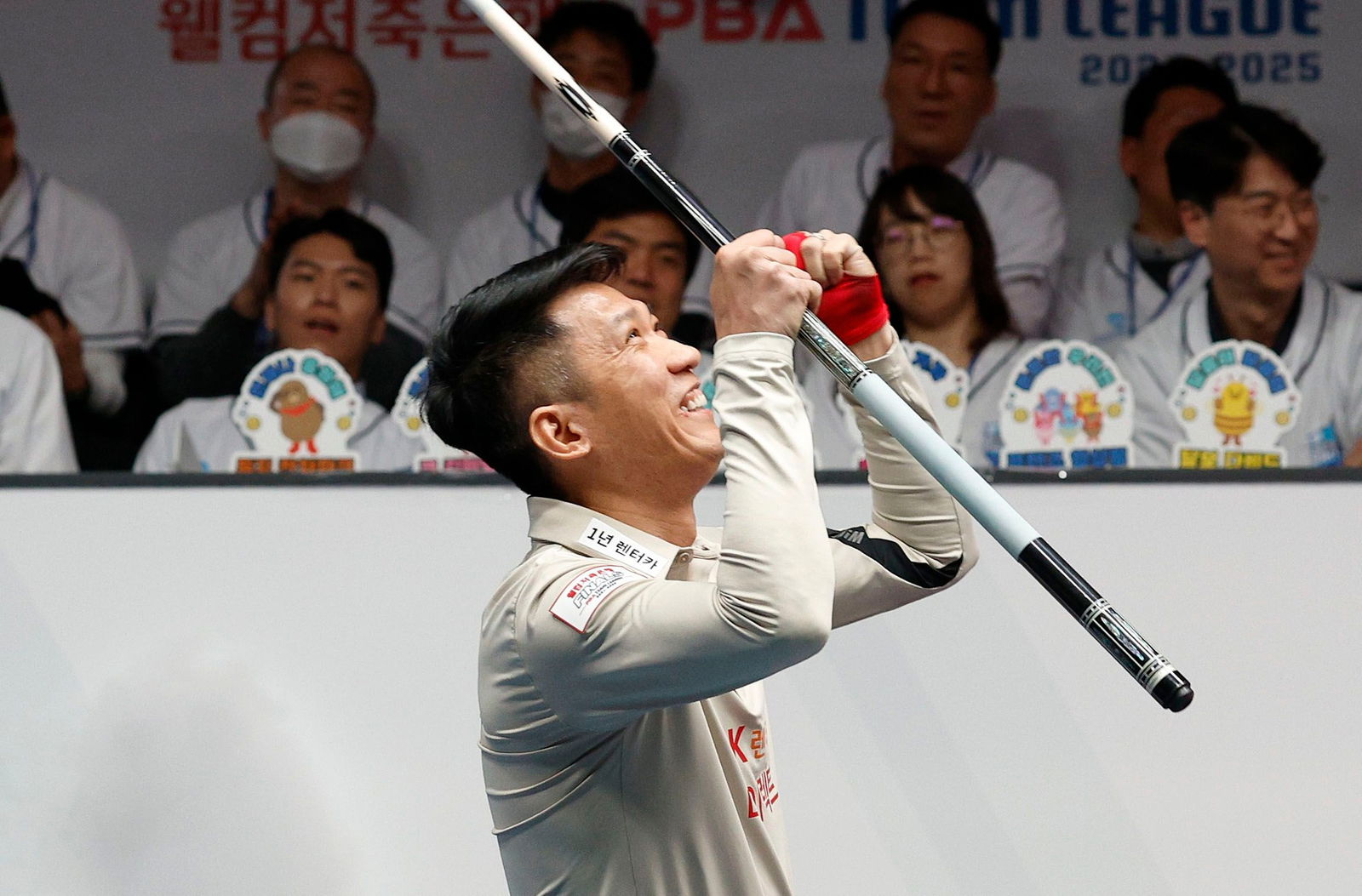 SEOUL – Het team van Direct heeft in de PBA league de finale van de teamliga gewonnen. Dat leverde de formatie van Eddy Leppens, Dong Koong Kang en Orie Hida de aardige som van 100 miljoen Koreaanse won, zo’n 70.000 euro op. Dat bedrag moet worden verdeeld onder zes spelers en de teamleider. De nummer twee, Woori Wiebies met David Zapata en Sruong Pheavy, kreeg de helft, 500 miljoen Koreaanse won.