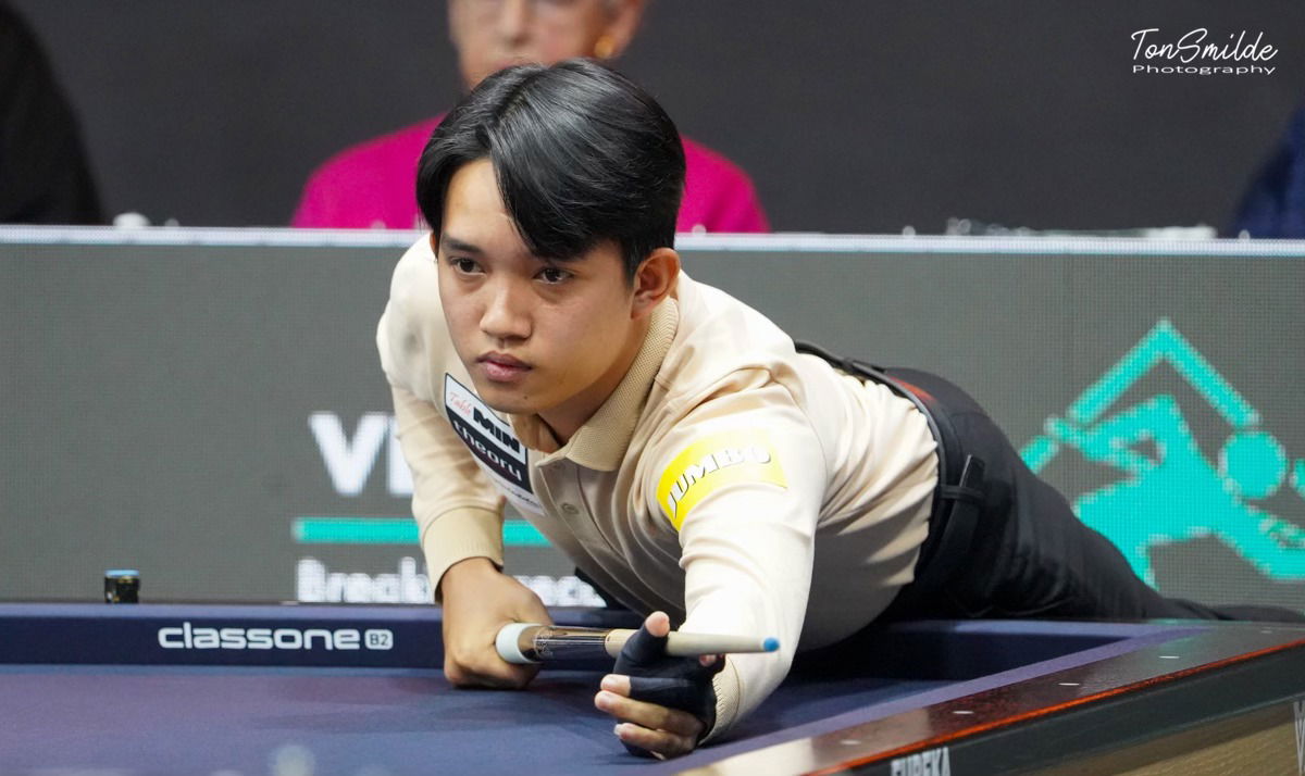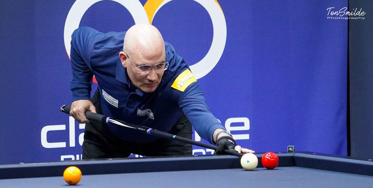 Jean Paul de Bruijn, die jammer genoeg niet meer alle World Cups speelt na zijn terugkeer van de PBA, is op weg zijn reputatie uit vroegere jaren waar te maken. De Nederlander speelt zich deze week in de gunst van het Oranje publiek en was ook was superieur tegen de Vietnamees Hong Chiem Thai, die voor het eerst een iets te lange inzinking had. De Zeeuw liep naar een voorsprong van 15-6, 31-25 en met series van 8 en 6 naar 47-29. Met drie keer 1 haalde De Bruijn de finish (50-34 in 34) voor zijn eerste podiumplaats sinds vele jaren. In een grijs verleden, in 2006, speelde hij een finale van een World Cup in het Spaanse Lugo en verloor toen van Dani Sánchez.