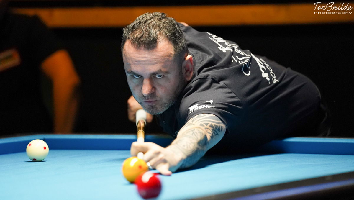 TILBURG/ZUNDERT – De ontknoping was nog min of meer verrassend, toen op zondag de beslissingen vielen in de Nederlandse eredivisie driebanden voor teams. Team Eekhoorn ging onverwacht onderuit, waardoor Cues&Darts en Topsport Zundert de twee resterende plaatsen voor de play-offs grepen. Roland Forthomme voor Zundert en Robinson Morales voor Cues&Darts waren met elk vier winstpunten de matchwinnaars. Roland Forthomme won zaterdag eerst van Ismaïl Yasin met 40-11 in 21 en zondag van Dave Christiani met 40-8 in 24: zelf maakte de Belg, die zijn afscheidstoernee maakt voor Zundert, 80 punten in 45 beurten, zijn tegenstanders haalden niet meer dan 11 en 8 punten. Robinson Morales deed wat Ruben Legazpi niet lukte voor Cues&Darts. De Colombiaan won zijn twee partijen, zaterdag tegen Jean van Erp met 40-34 in 24, zondag tegen Peter De Backer met 40-24 in 21. Die wedstrijd van zaterdag ging voor Cue&Darts nog verloren tegen SIS Schoonmaak met 6-2, omdat Jef Philipoom op één carambole struikelde tegen Raimond Burgman.
