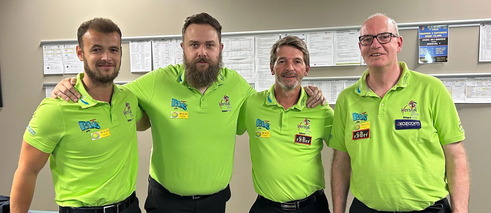 HERSTAL – De Belgische teamcompetitie heeft deze week met de 11e speelweek de winterstop ingezet. Het team van Herstal is de winterkampioen met drie teams in de achtervolging. Het kampioenschap wordt in het tweede part beslist, maar vier teams hebben een grote voorsprong genomen op de rest van het veld. De competitie hervat weer half januari. Koploper Herstalien boekte maandag maximaal door met 8-0 te winnen bij De Ploeg. Roland Forthomme versloeg Ronny Lindemann met 40-26 in 28, Pierre Soumagne was de betere van Dustin Jäschke met 40-35 in 25, Dany Boutet domineerde Roger Roefs met 40-19 in 40 en Thomas Broux ontdeed zich van Eddy Willems met 40-32 in 27 overs. Herstalien (20 punten in 11 rondrn) blijft aan de leiding en heeft zijn voorsprong vergroot op een trio (Op de Meir, Mister 100, Biljart Express) dat nu 4 punten achterstand telt.