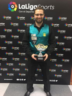 MADRID - Javier Palazón en Juan David Zapata waren de hoofdrolspelers in de Memorial José María Morales, die dit weekend in Madrid is gespeeld. De twee finalisten speelden op een uitzonderlijk hoog niveau in de eindfase van het toernooi. De overwinning ging naar Javier Palazón, die won met 40-39 in 15 beurten (2.666 en 2.600 gemiddeld). Het was een ware demonstratie van de twee finalisten, die het publiek vermaakten in de arena van de Spaanse federatie.