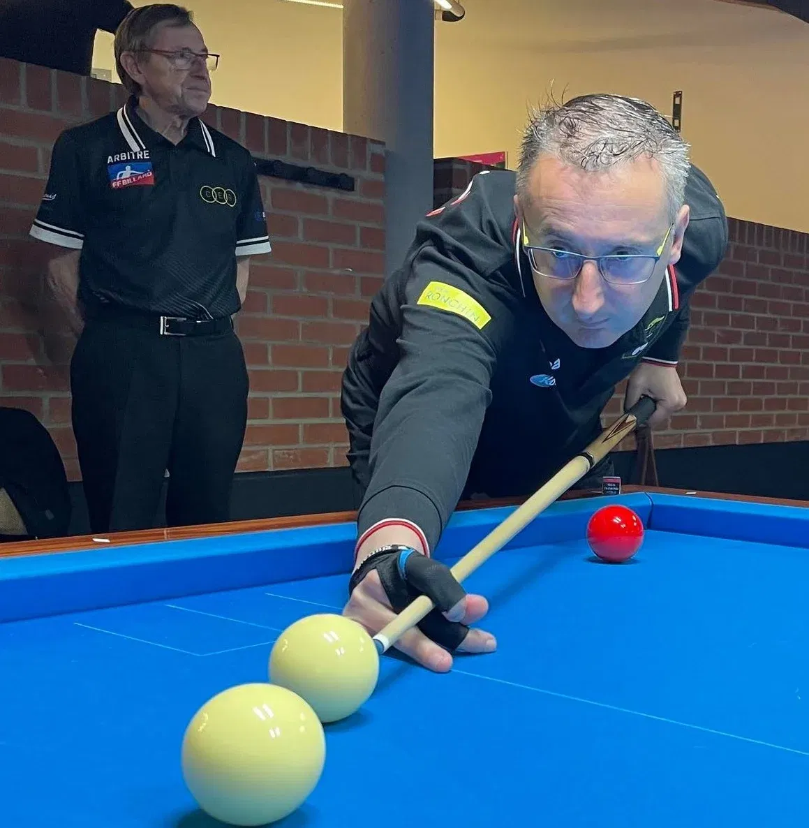 RONCHIN – Jawel, Jan-Francois, dat is twee en het is nog niet voorbij... De titel, zijn tweede deze week, kwam er na een voelbare spanning en emotie aan het einde van de finale tussen Jean-François Florent en Benoît Deziles-Legros. De gemiste backhand van Jean Francois, de voorzitter van de Ronchin club, terwijl hij voor twee speelde, verraste iedereen, want tot dan toe had de recente Franse kampioen in het vrij spel een prachtige finale gespeeld tegen degene die de man in vorm leek te zijn of zelfs de favoriet gezien de vorige gemiddeldes.