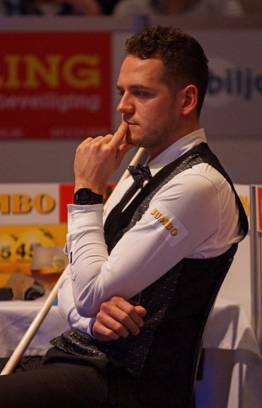 De Brabantse debutant was er dolgelukkig mee. ,,Ik heb een paar dagen geleden weer een ongelukje gehad met mijn knie, waaraan ik al twee keer ben geopereerd'', vertelde hij na de partij. ,,Daardoor sta ik af en toe met pijn aan de tafel, maar het is geen excuus voor de zwakke laatste partij. Ik ben nog een kleine jongen in het biljarten en ben blij met de plaats in de kwartfinales.''