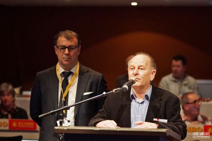 Frans van Schaik en spreekstalmeester Ferry van der Veen bespelen het publiek op de Masters
