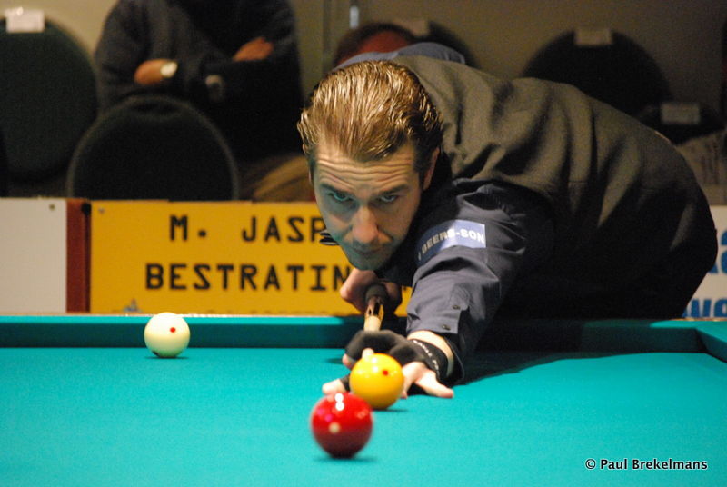 ZUNDERT - Het Kersttoernooi in Zundert had op de eerste dag het beste voor het laatst bewaard. De twee Belgen Eddy Merckx en Peter Ceulemans, allebei topfavoriet in hun poule, vochten in de laatste sessie een mooi gevecht uit. Zowel Merckx (tegen Gerwin Valentijn, 40-37 in 33) als Ceulemans (tegen Pierre Soumagne, 40-21 in 19) was met winst aan het toernooi begonnen. Merckx won in de laatste avondsessie het titanengevecht om de koppositie. Peter Ceulemans deed nog een dappere poging om op een score van 40-30 gelijk te maken, maar strandde in de nabeurt op 7 (40-37 in 18 beurten). Toch was Ceulemans met zijn moyennes de uitblinker van de openingsdag met partijen van 40 en 37 in 19 en 18 beurten (2.081).