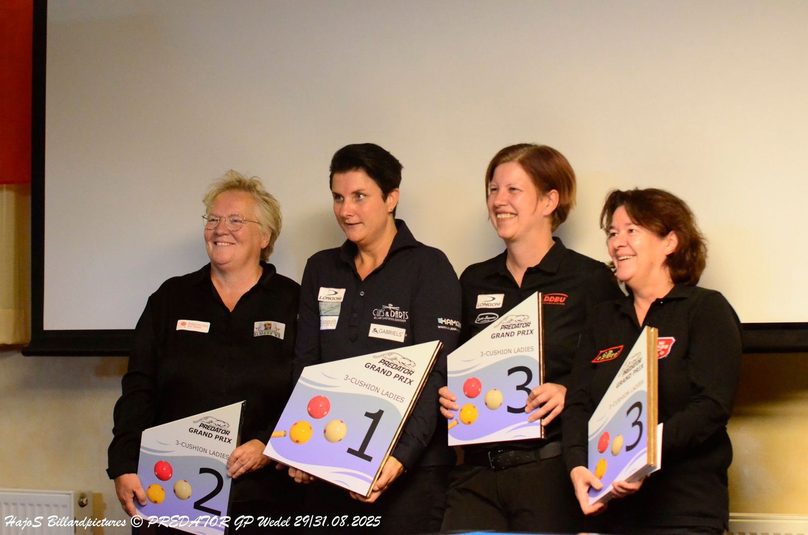 WEDEL – Op het podium van de Grand Prix driebanden voor dames stonden zondag drie Nederlandse vrouwen voor vier medailles. De overwinning was voor Therese Klompenhouwer, wat nooit een verrassend resultaat kan zijn in een damestoernooi. Het Nederlandse damesbiljarten domineert het Europese circuit, zoals de eindscores laten zien. De Deense Charlotte Sörensen heeft een jaar achter de rug, waarin ze de hegemonie doorbrak met twee internationale titels, maar is voorlopig teruggevallen naar een niveau dat niet genoeg is om Klompenhouwer te bedreigen.