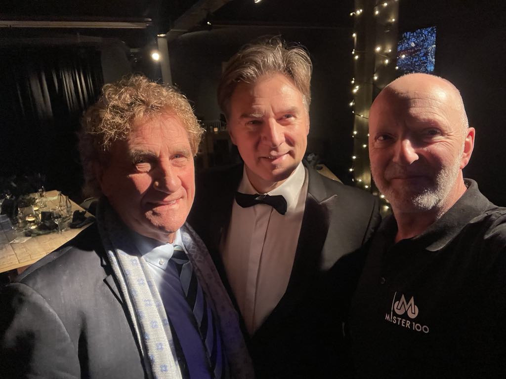 Kurt Ceulemans (rechts), de organisator, poseert in een avond met veel entertainment met Jean Marie Pfaff (links), de 71-jarige legendarische doelman en de operazanger John Reels.
