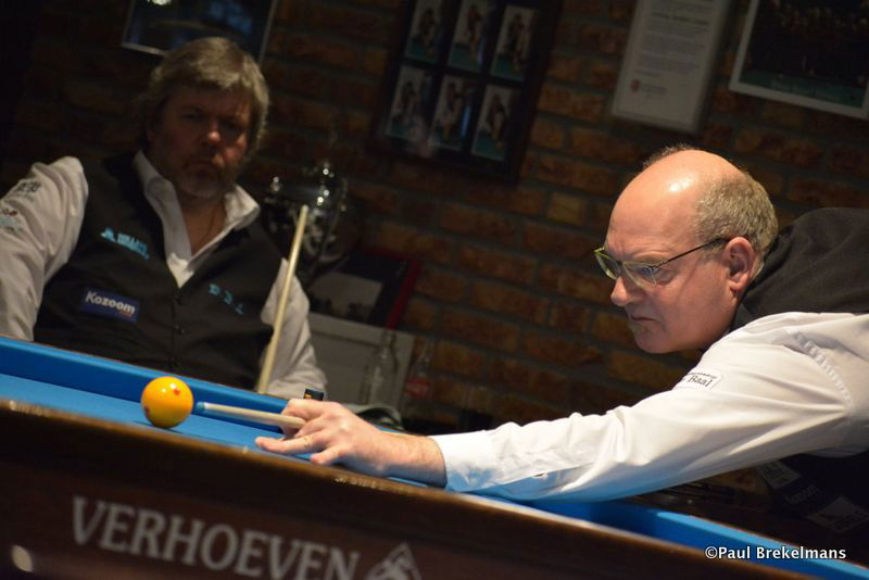 De Leug won met 6-2 van KBC Kortrijk, onder andere door een prima partij van Johan Loncelle, die Martin Ravestyn versloeg met 42-37 in 18. Ook Wesley de Jaeger speelde een hoogstaande partij: 50-31 tegen Ronny Brants in 21 beurten. De Witte Molen won van TBA Biljartpalace met 6-2.