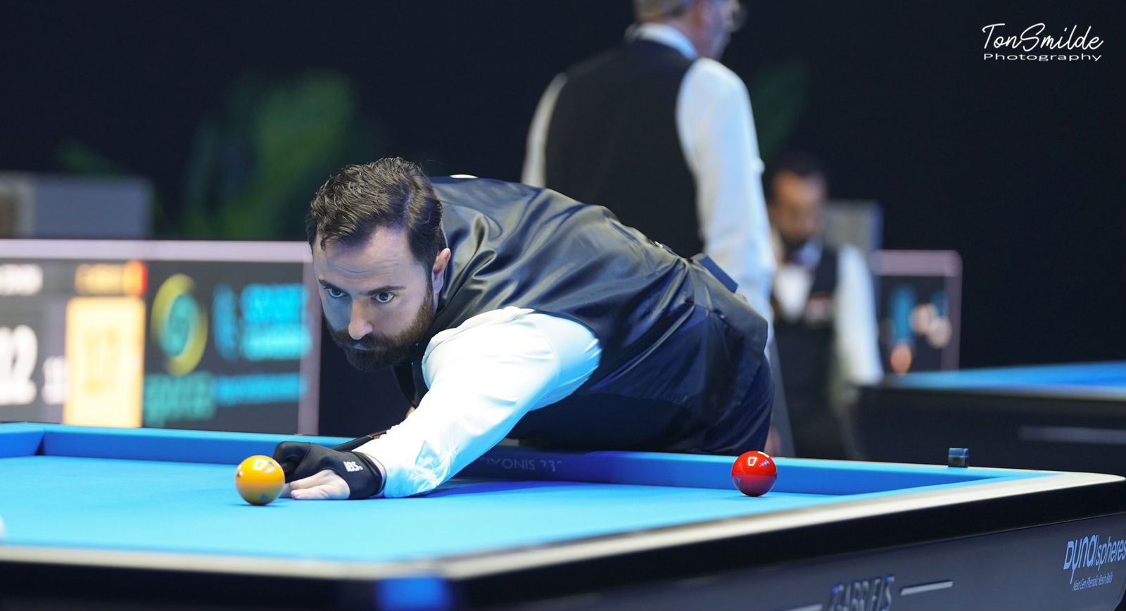 OOSTERHOUT – De ogen waren gericht op topspelers en topaffiches in de Nederlandse eredivisie. De top vier ging naar winst, zodat de posities in de bovenste helft ongewijzigd bleven. De winnaar van het WK, Frédéric Caudron, en de winnaar van de World Cup, Martin Horn, liepen allebei tegen gevoelige verliespartijen. Tayfun Tasdemir leidde met 23-3 tegen Caudron en won met 40-23 in 13 beurten. Berkay Karakurt deelde een flinke tik uit tegen Martin Horn en won met 40-23 in 16 beurten. Team Babbelz ging ondanks het verlies van Caudron naar een 6-2 overwinning tegen Bousema, de bekerhouder. Want behalve Karakurt wonnen ook Davy van Havere van Jeffrey Jorissen met 40-29 in 24 en Jack Wijnen met 40-21 van Stefan Galla in 21 beurten. Het leverde voor Team Babbelz het geweldige teammoyenne op van 1.906 en voor Berkay Karakurt een hoogste serie van 14. Tayfun Tasdemir was namens Bousema de beste speler van deze zevende ronde: 3.076 gemiddeld.