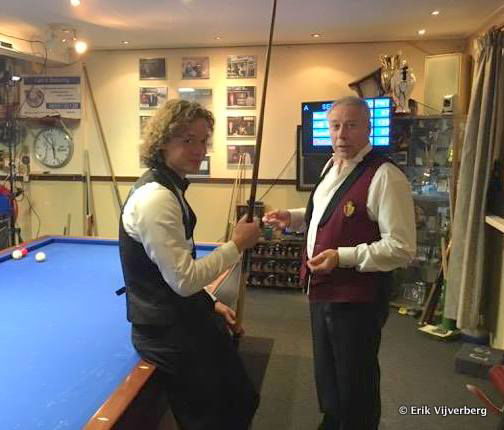ALMELO - De Masters winnaar van 2016, het jonge talent Jop de Jong, gaat na 40 van de 70 figuren aan kop in de Jan Brunnekreef Memorial. Het internationale artistiek toernooi, thuis bij Erik Vijverberg in Almelo, gaat over twee dagen. Jop de Jong voert na de eerste dag het achtkoppige veld aan met 194 punten. Hij wordt gevolgd in de tussenstand door René Dericks met 189 punten en Erik Vijverberg met 174. De acht spelers zijn verdeeld in twee groepen van vier. Jop de Jong had een ijzersterk slot van de eerste dag, waarin hij René Dericks van de hoogste positie verdrong.