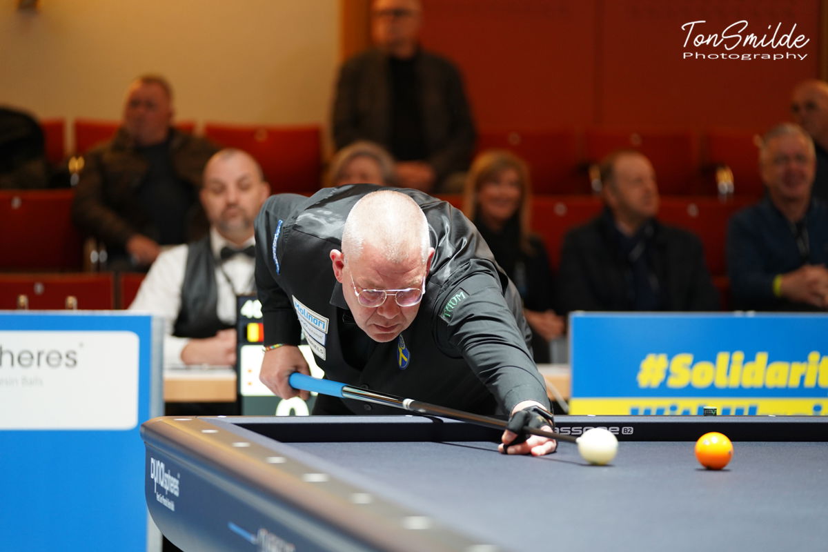 VIERSEN – Twee prachtige series van Quyet Chien Tran, de Vietnamese kopman, hebben zijn team nog niet in de volgende ronde gebracht van het WK voor landenteams in Viersen. De Zweedse recordhouder in titels, Torbjörn Blomdahl en Michael Nilsson, versloeg donderdagavond laat de Vietnamezen met 4-0 en nam na twee ronden in deze Poule D de koppositie met 3 matchpunten. Vietnam en België volgen met twee punten, Oostenrijk heeft één punt. Morgen, vrijdag, speelt Zweden nog tegen Oostenrijk en Vietnam tegen België.