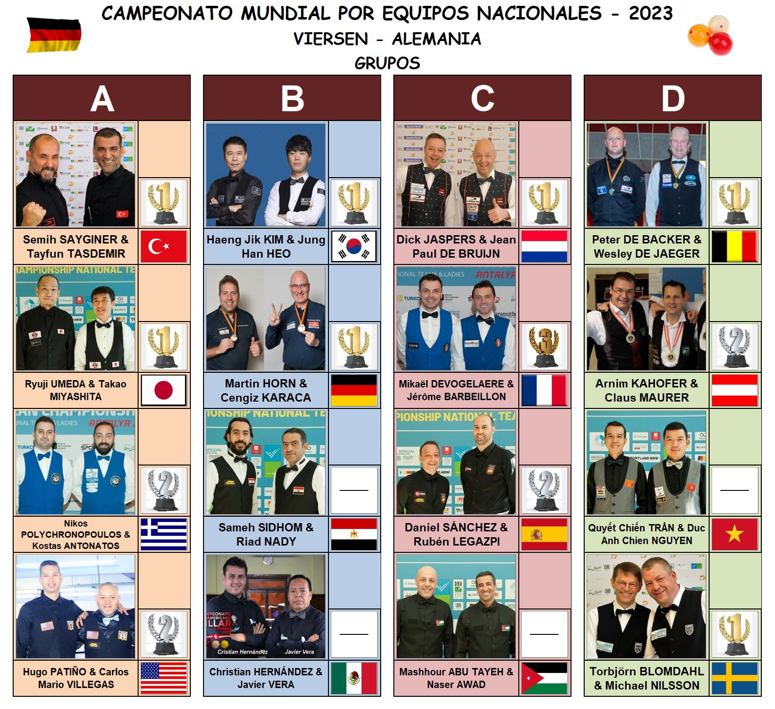 Haeng Jik Kim, de verliezend finalist in Las Vegas, en Jung Han Heo zijn zeker ook grote kanshebbers met Zuid Korea voor de WK winst. De Nederlanders komen met Dick Jaspers en Jean Paul de Bruijn, de Spanjaarden met Dani Sánchez en Ruben Legazpi, de Zweden met Torbjörn Blomdahl en Michael Nilsson en de Vietnamezen met Quyet Chien Tran en Duc Anh Chien Nguyen.